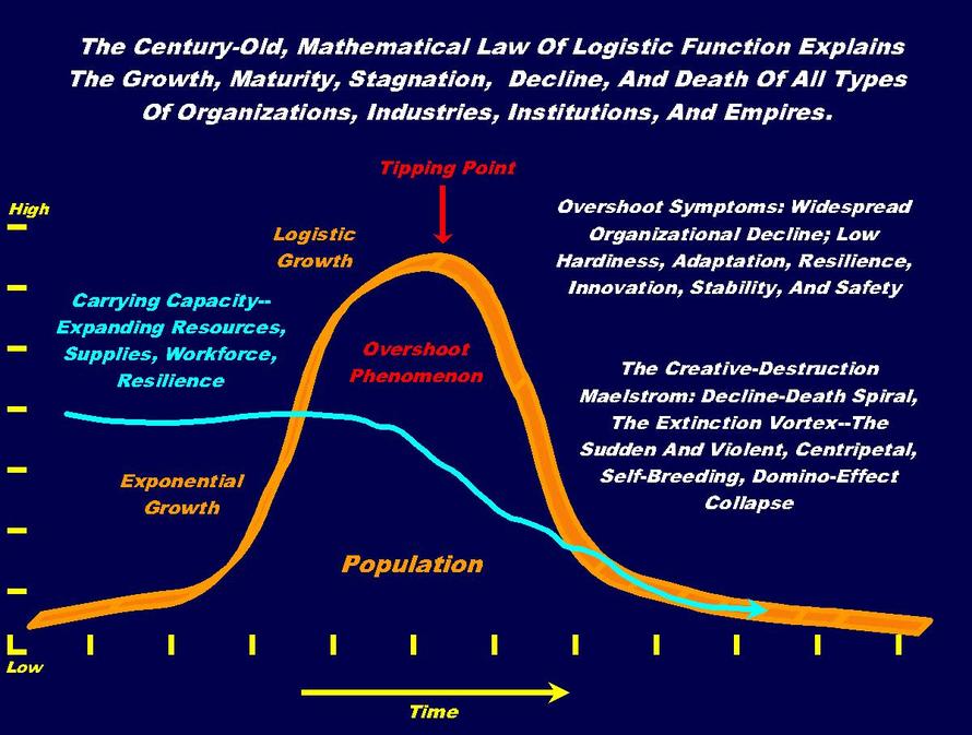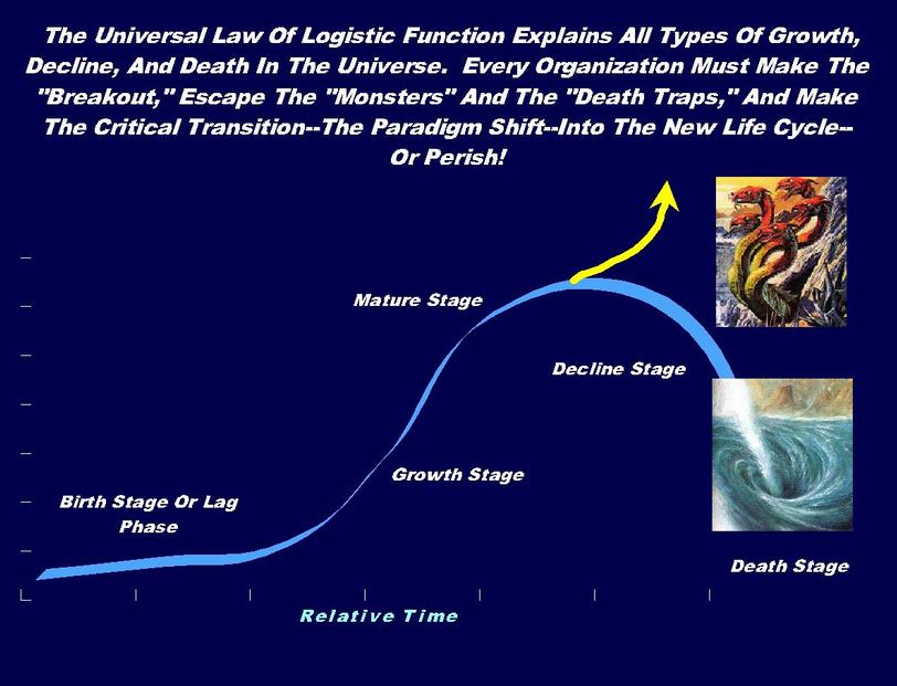 Pierre Francois Verlust first published the law of logistic function back in 1845. This universal mathematical law has described the evolution of every "system" from enzymes to empires. Most people know it as the "S" curve.