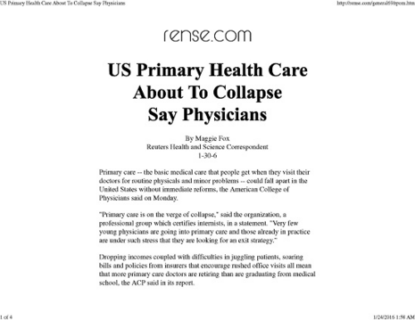 Up until 1988 when the HMO industry suddenly crashed, the elites said managed care would "dominate" American healthcare; But patients called it "cattle car medicine," or technically it was suffering from extreme commodification.