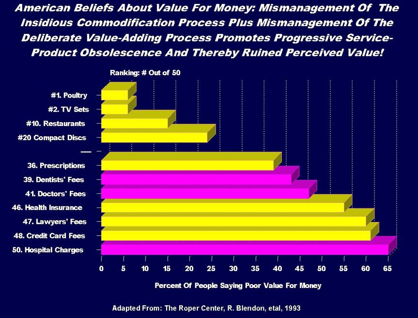 The US Hospital Services Industry during the past century has achieved an astounding, unprecedented level of technological achievement. In fact, the American hospital is indeed one the technological marvels of the 20th century. How is it that the American people rank hospital value-for-money last? Is the institutionalization- commodification- dehumanization syndrome of a professional service organization the answer?