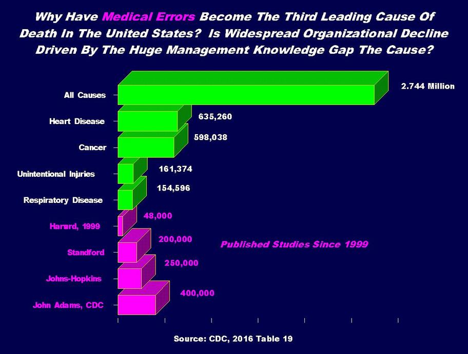 Published studies by respected institutions reveal that there is an "astounding" level of errors in the healthcare establishment, especially in the hospital sector. American healthcare is now the third leading cause of death. What is the reason for such bad performance? Again, the root cause of this sobering problem is the huge management knowledge-gap in the healthcare establishment.