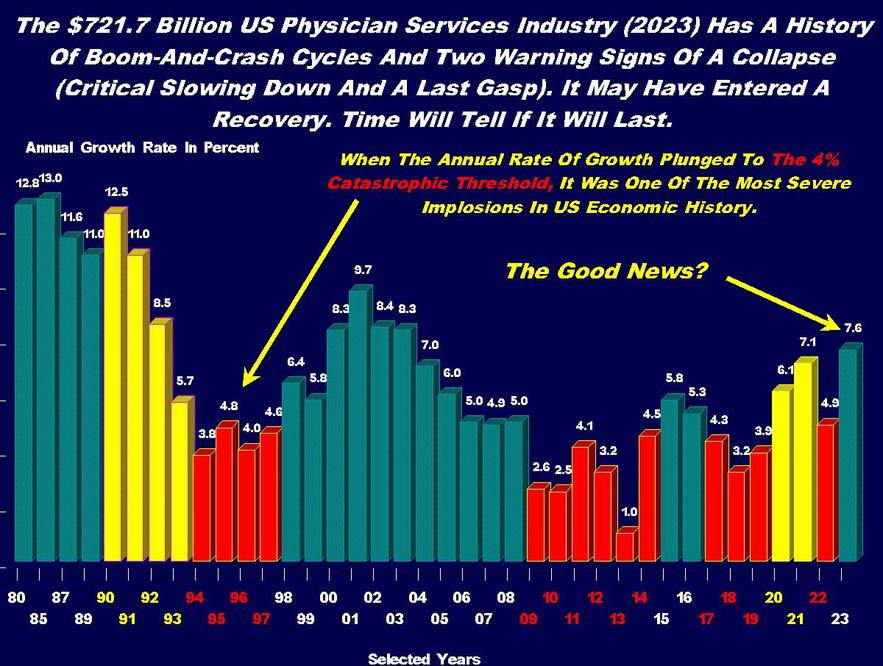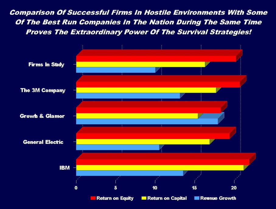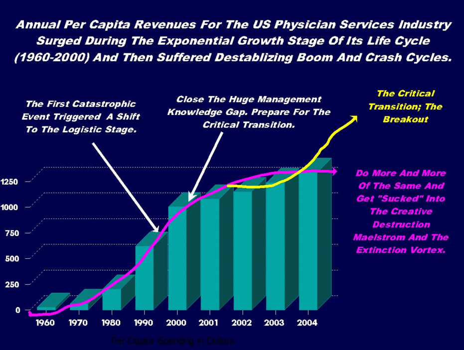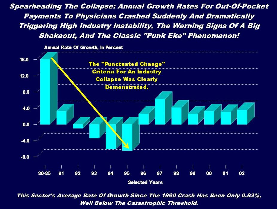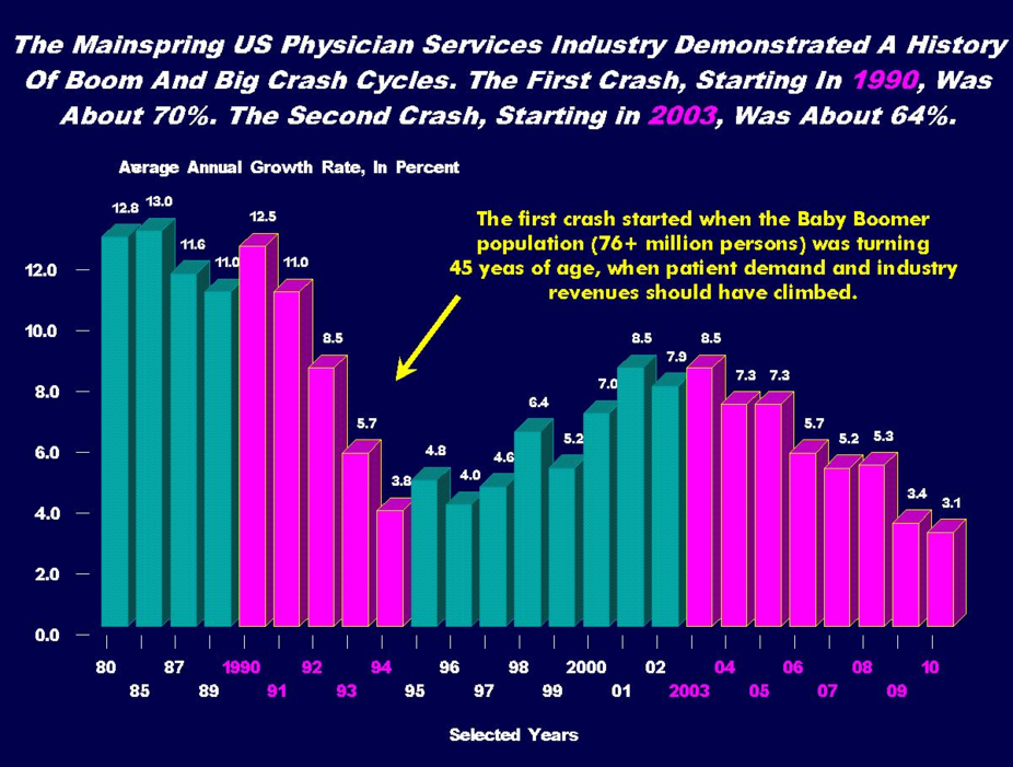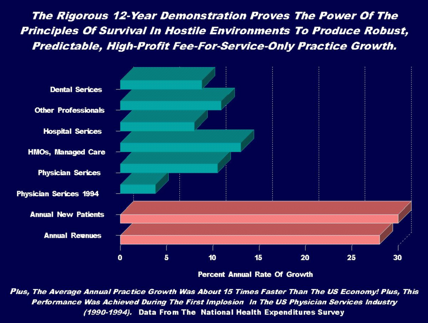 The power of the principles of survival that were discovered decades ago were demonstrated in a 12 year demonstration project conducted when the US Physician Services industry experienced a collapse-size, catastrophic implosion in the industry rate of growth that was about three times more intensive that the worst stock market crash in US history.