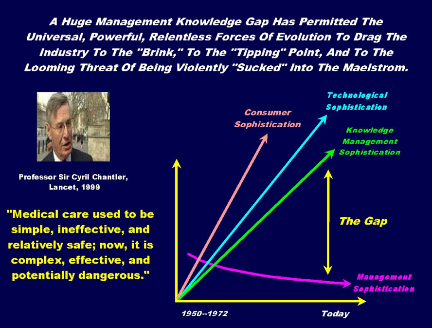"Crossing The Quality Chasm." More Than Two Decades Later, This Monumental Effort Is Struggling And Failing. The Leading Cause Is Presented Here As The "System" Has Failed Because It Cannot Translate Knowledge Into Practice And Implement Innovations In A Timely, Safe Manner. In Short, The Failure Is Because Of The Huge Management Knowledge Gap. This Gap Must Be Closed Before Any Innovations Like Single-Payer, Medicare-4-All, Obamacare 2.0, And Valued-Based Models Of Healthcare Are Implemented Or Billions Of Dollars Will Continue To Be Wasted And Millions Of Americans Will Continued To Be "Severely Harmed."