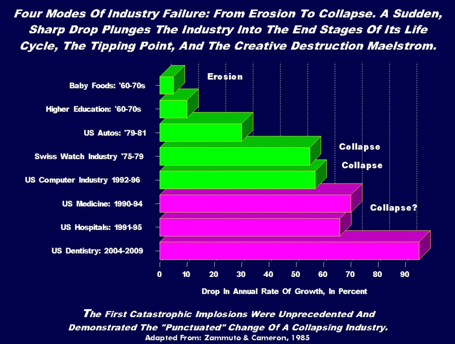 The collapse of the Swiss Watch Industry is a classic case study in every business school on the planet. US Medicine, US Dentistry, And The US Hospital Industry technically suffered a huge collapse; but nobody seemed to notice this unprecedented event and its critical importance. It was business as usual; just a "little neglect."