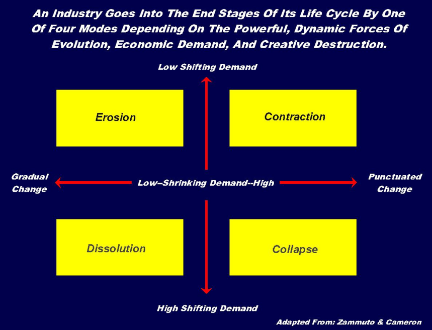 When An Industry Is Grossly Mismanaged And Plunges Into The End Stages Of Its Life Cycle, The Climate Becomes "Toxic" And "Turbulent." The Climate Is Described As "Hostile." Destructive And Deviant Behaviors In Organizations Skyrocket. The Industry Suffers From Widespread Organizational Decline. Behaviors Shift From Constructive To Destructive And Malignant.