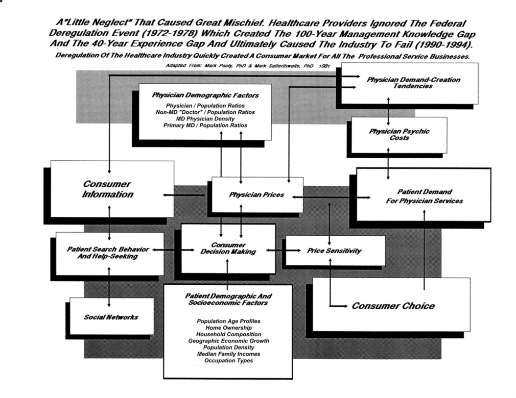 The graphic below is another example of the huge management knowledge gap that's ruining US healthcare. The "managers" failed to respond appropriately to the Federal deregulation that created a classic economic, consumer-driven market.