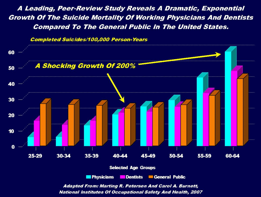One major critical transition was the industry deregulation (1972-1978). It was the paradigm shift from an authoritarian, paternalistic model to a consumer-driven, market-based model of American healthcare. In 1981, two distinguished healthcare economists published a landmark article describing the factors propelling the market-based model. One of the factors was the "physicians psychic costs." Unfortunately, this factor was ignored by the doctors, the dentists, their handlers, and the bureaucrats. It was a major blunder with devastating consequences, namely the skyrocketing explosion of caregiver suicides.