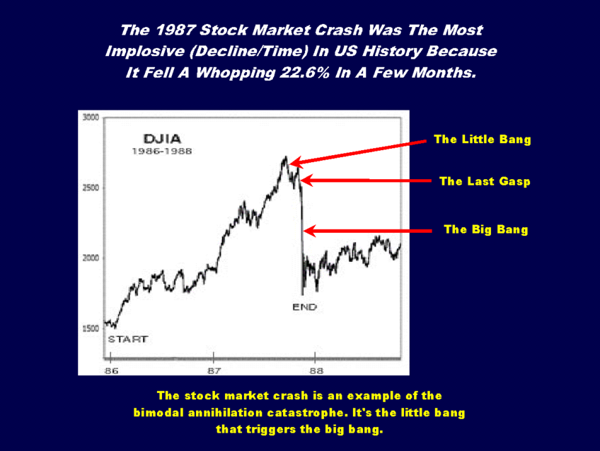One of the critical phenomena that have been ignored and mismanaged for decades is called unstable equilibrium. Here is a compelling graphic of the phenomenon. It portrays the extreme fragility of structure and its vulnerability to relatively small impacts-the "little bang that triggers the big bang.: Notice the small dog in the right-bottom of the picture.