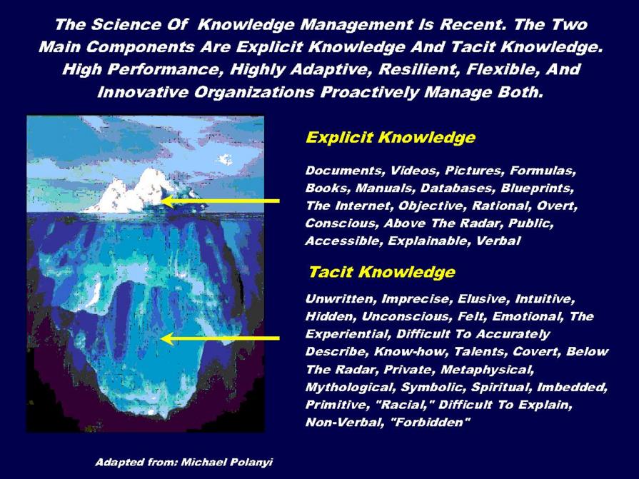 Why is it important to include the knowledge base that is built on centuries of symbolism? The collective, symbolic, deeply embedded human experiences of dealing with challenging events gets physically “coded” into the human genome which helps future generations deal successfully with the challenges of making the critical transition and escaping the maelstrom. It’s a fact, the science is called: trans-generational epigenetic inheritance. Tacit knowledge is in the bottom of the knowledge iceberg; It's also called the collective unconscious, or collective memory. Surprisingly, tacit knowledge is coded into what was once mistakenly called "junk genes." Symbolism allows people to tap into this vast meta-physical warehouse. Organizations that encourage and allow workers to tap into the knowledge base are the most successful, the most resilient, and the most innovative. They also enjoy strong growth especially in an industry facing the hostile business environment of the maelstrom, the death spiral, and the extinction vortex.