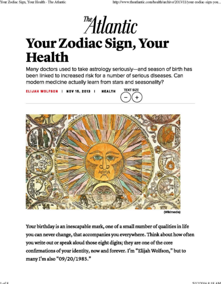 Surprisingly, long-standing research has demonstrated that the admonitions of Hippocrates were accurate. There is a strong relationship between a person' time of birth and their disease vulnerabilities.